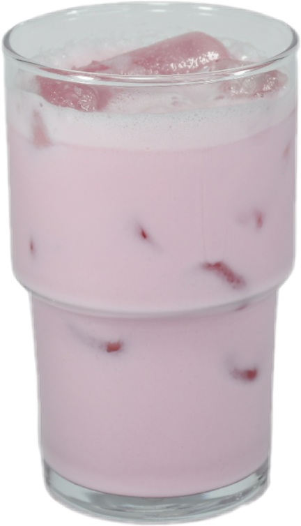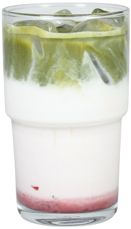 ماچا، شیر و پوره توت فرنگی به همراه یخ