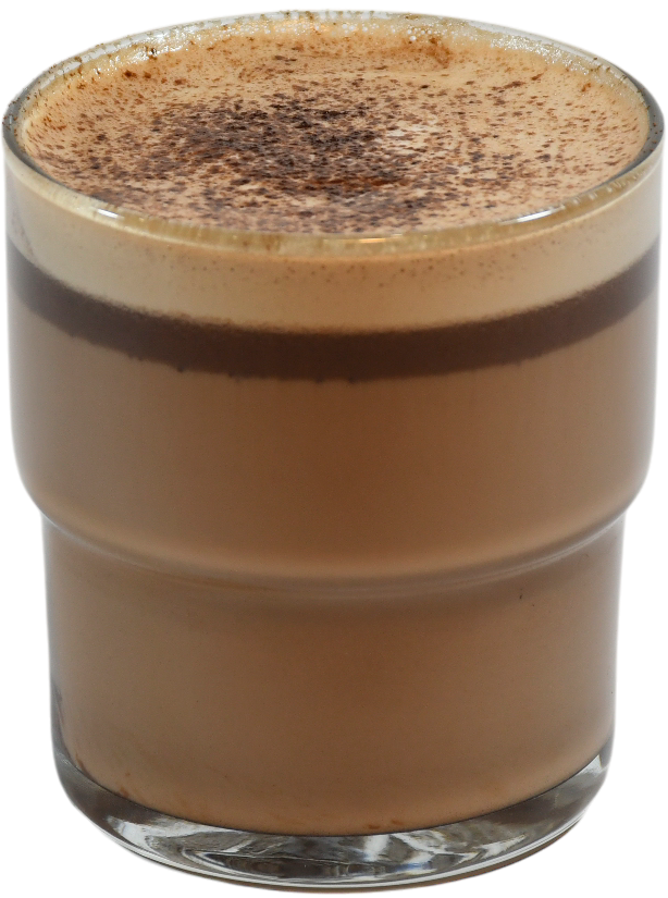 اسپرسو به همراه شیر گرم با فوم مخملی و سس شکلات