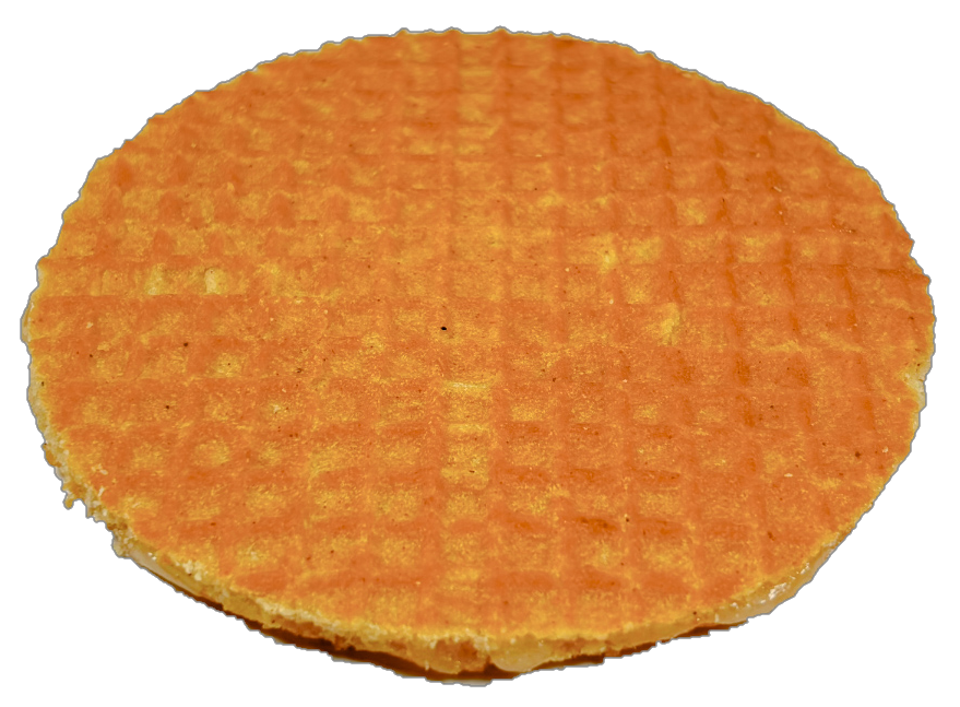 وافل هلندی دستساز متشکل از دو وافل ویفری نازک و لایه میانی از سس کارامل