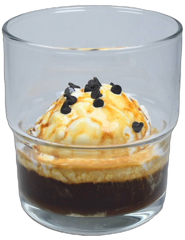 اسپرسو به همراه یخ و شیر و سس شکلات