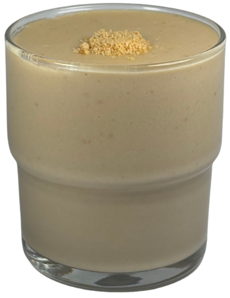 شیر و یخ به همراه پودر شکلات و تکه های بادام زمینی